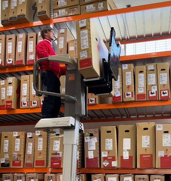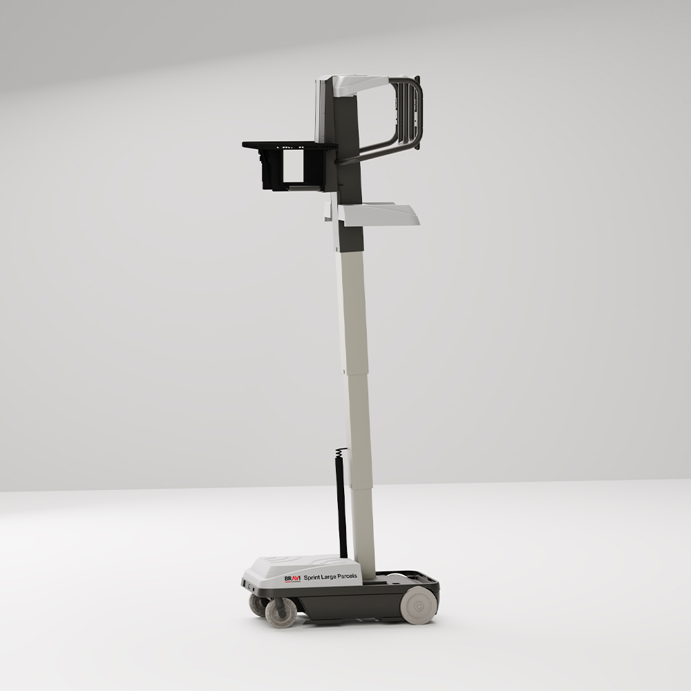 Sprint LP este versiunea avansată a modelului Sprint, concepută pentru a manipula în siguranță și cu precizie colete voluminoase. Designul compact și intuitiv garantează o manevrabilitate excepțională, în timp ce raftul motorizat cu role laterale facilitează manipularea mărfurilor, reducând efortul și timpii de execuție.
