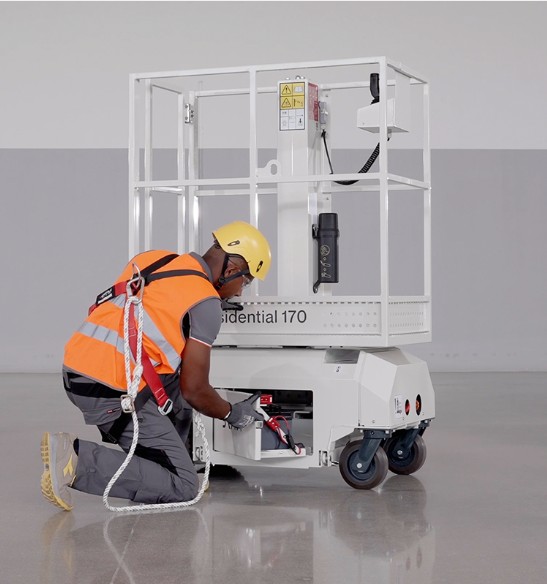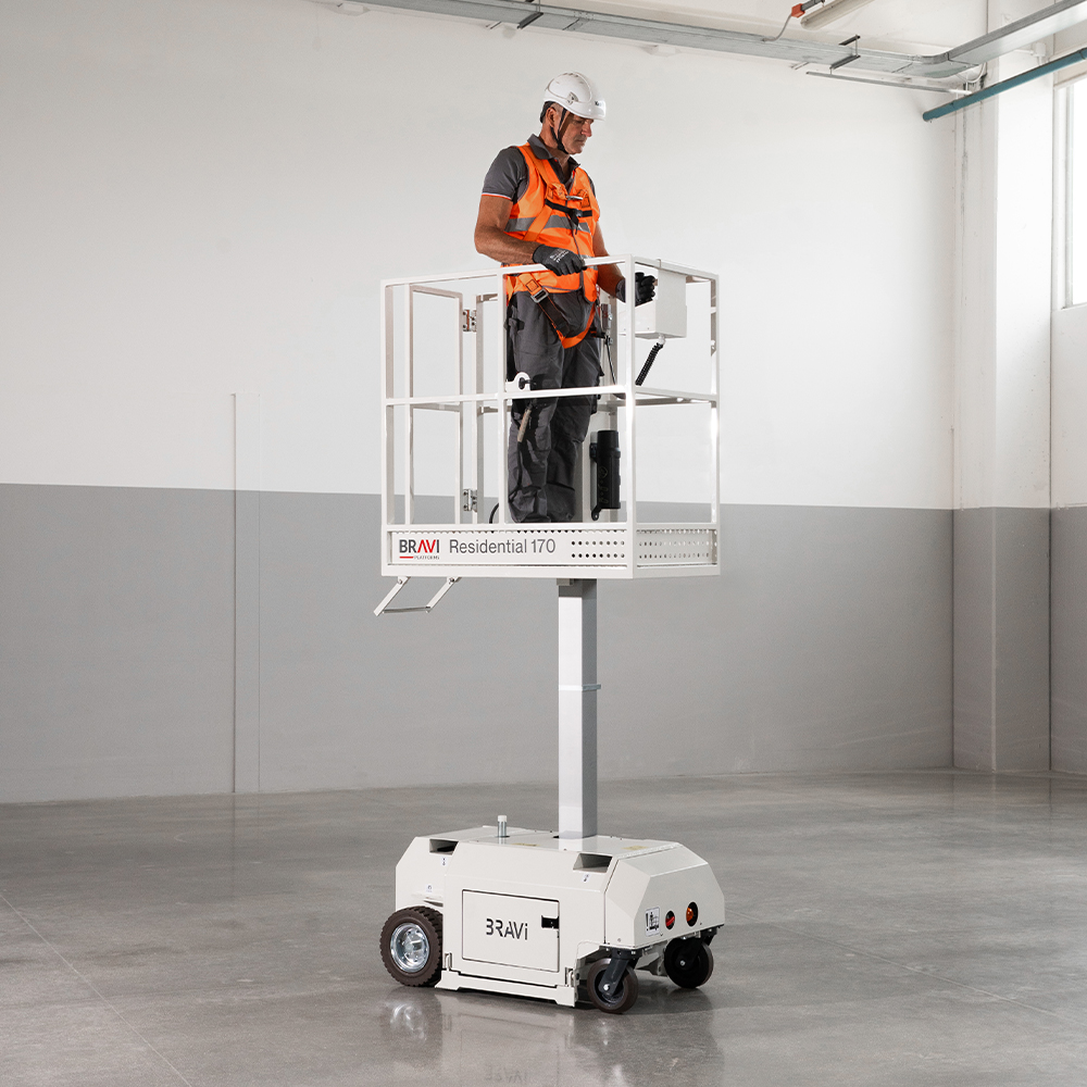 Residential 170 este prima platformă special concepută pentru clădiri rezidențiale. Ușoară și ușor de manevrat, se potrivește cu ușurință prin coridoare, uși standard și lifturi. Raza sa de bracaj zero permite o mișcare lină chiar și în cele mai înguste spații. Greutatea sa redusă o face, de asemenea, ideală pentru pardoseli și plăci finisate. Poate fi transportată cu o dubă și operată de o singură persoană, este sigură, profesională și gata de utilizare imediată. Residential 170 susține fiecare fază a șantierului, de la început până la sfârșit, asigurând eficiență și confort în orice mediu.