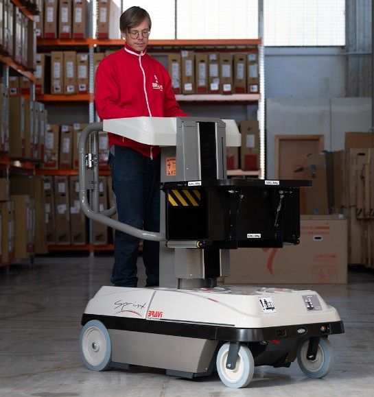 Sprint LP este versiunea avansată a modelului Sprint, concepută pentru a manipula în siguranță și cu precizie colete voluminoase. Designul compact și intuitiv garantează o manevrabilitate excepțională, în timp ce raftul motorizat cu role laterale facilitează manipularea mărfurilor, reducând efortul și timpii de execuție.